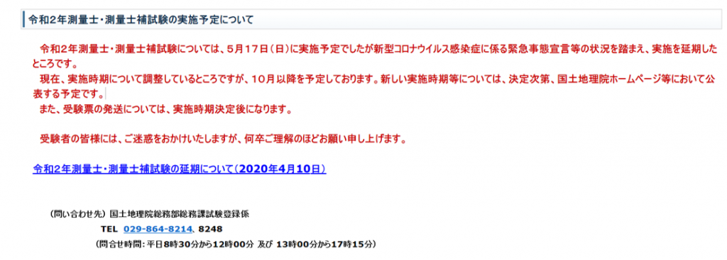 さて、緊急事態宣言も終わり、本来5/17に試験だった測量士・測量士補の試験日程の情報が出てきました。